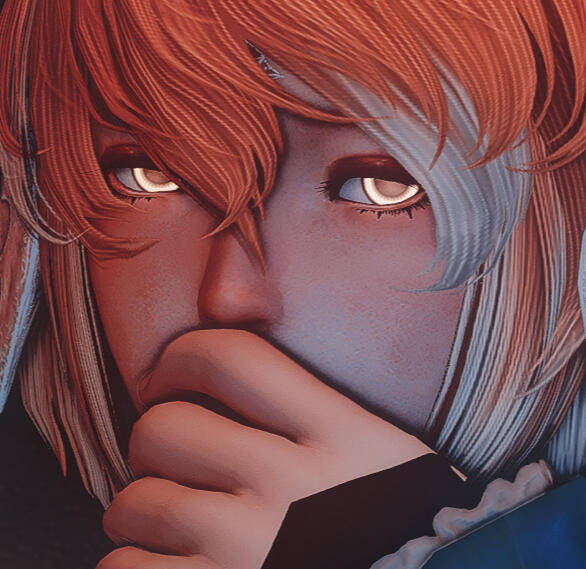 + Those gifted with the ability to perceive aether by sight might regret looking directly at the medic's dizzying essence without preparation.His aether is oddly textured, covered in holes like a moth-eaten sheet left to molder in the dark; corrupted orange at their frayed borders. While stable and at no risk of sputtering out, it drips and dribbles like a black pond reflecting a gray and purple rainstorm overhead. it's aggressive, it's passive: it's both at once. it can't tell what it wants to be, and when the light shines on it, it glistens with an agonizingly messy kaleidoscopic pattern of too much fit into a single, cracking petri dish.